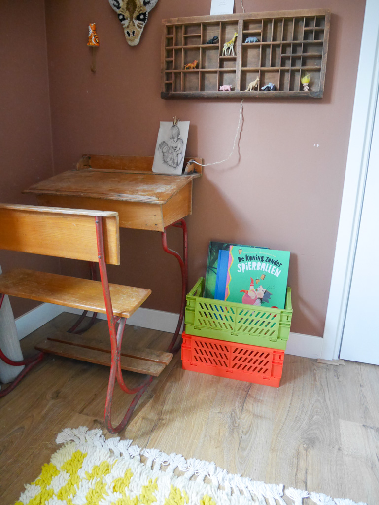 Een sfeervolle mix van vintage, kleur en karakter Wanneer je de kinderkamer van mijn zoontje Bob binnenstapt, voelt het alsof je een klein verhalenboek instapt. Het is een mix van speelsheid, gezelligheid en karakter – precies zoals een kinderkamer hoort te zijn. Met een liefde voor vintage meubels en een oog voor detail, heb ik geprobeerd een plek te creëren waar hij zich kan uitleven, maar ook kan terugtrekken. Een vintage basis vol sfeer Het bed van Bob is een leuk houten meegroei exemplaar, eenvoudig en tijdloos, maar vooral stevig genoeg om al zijn avonturen te doorstaan.