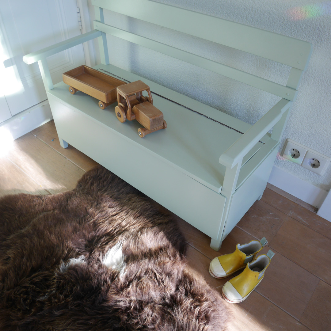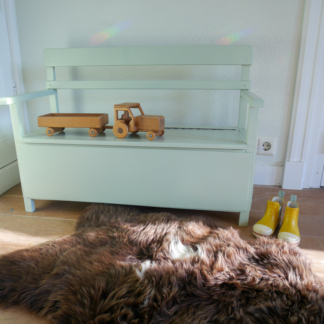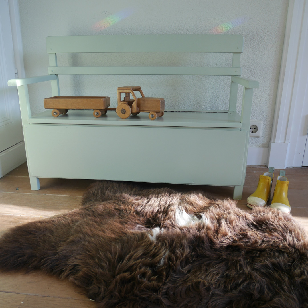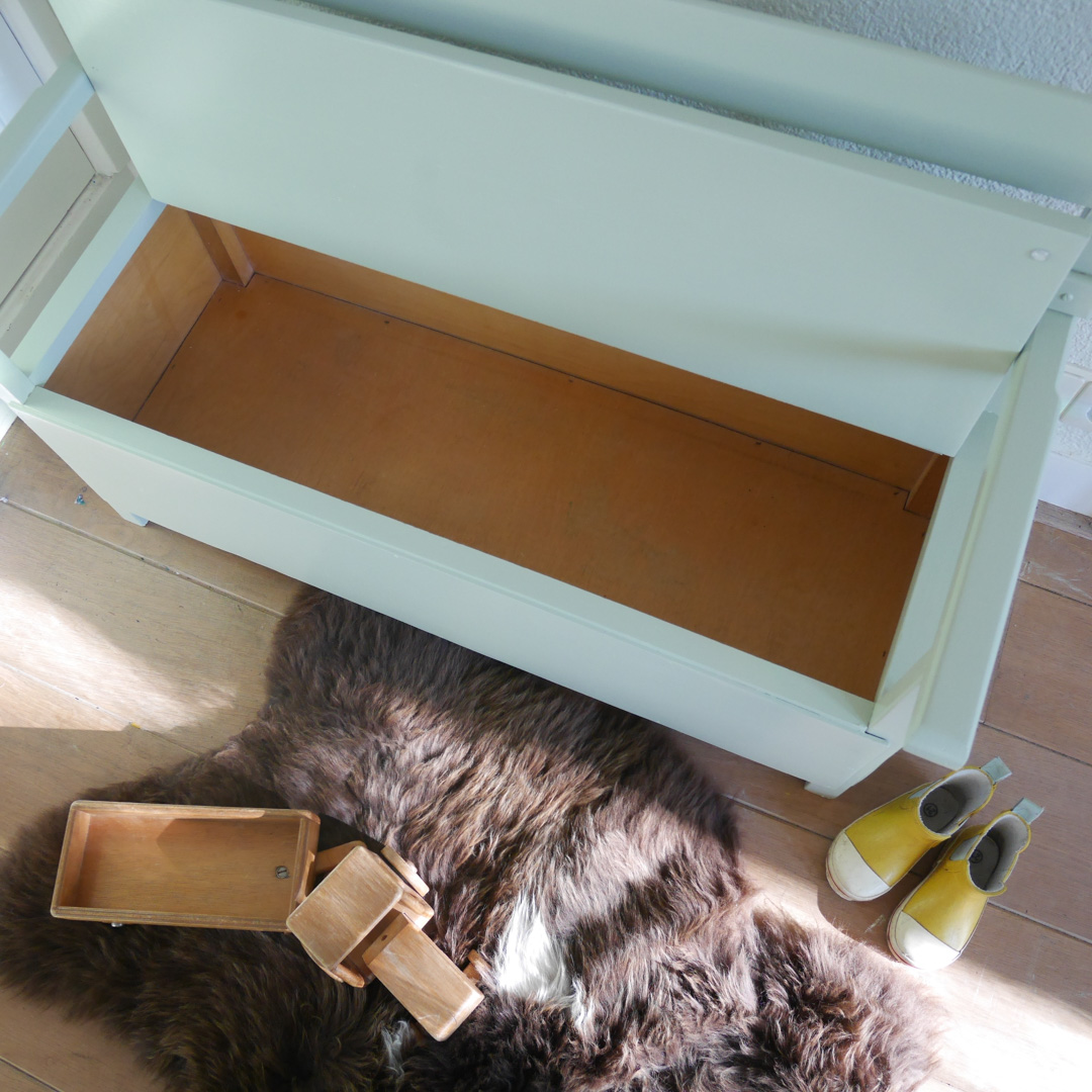 Een klepbankje is precies zo’n meubelstuk dat gewoon heel leuk is maar tegelijkertijd heel erg praktisch. Perfect voor de kleintjes om op te zitten, maar ook heel handig als opbergruimte voor speelgoed en knuffels. Het kinderbankje is grondig schoongemaakt, geschuurd en in deze mooie lichgroene kleur geschilderd. En nu is hij op zoek naar een mooi nieuw plekje!