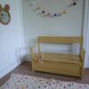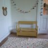 Een klepbankje is precies zo’n meubelstuk dat gewoon heel leuk is maar tegelijkertijd heel erg praktisch. Perfect voor de kleintjes om op te zitten, maar ook heel handig als opbergruimte voor speelgoed en knuffels. Het kinderbankje is grondig schoongemaakt, geschuurd en in deze mooie okergele kleur geschilderd. En nu is hij op zoek naar een mooi nieuw plekje!